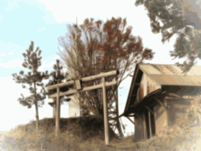 This shrine(hut) stands on the summit of a mountain in my town.