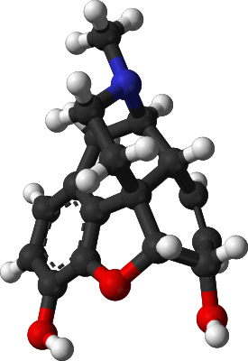 Morphine molecule from a public domain image on Wikipedia Commons.