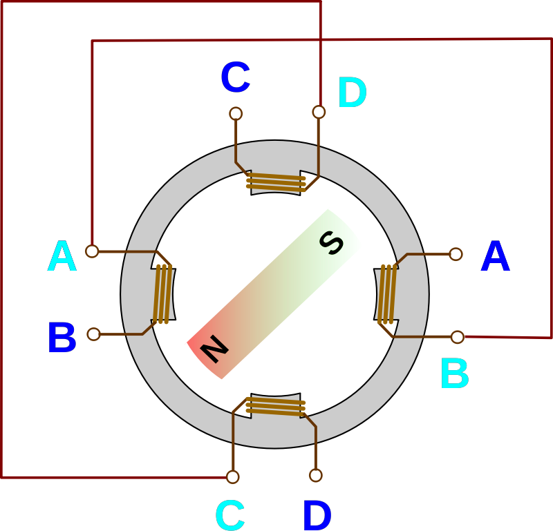 Schrittmotor (Schema) mit verdrahteten Spulen