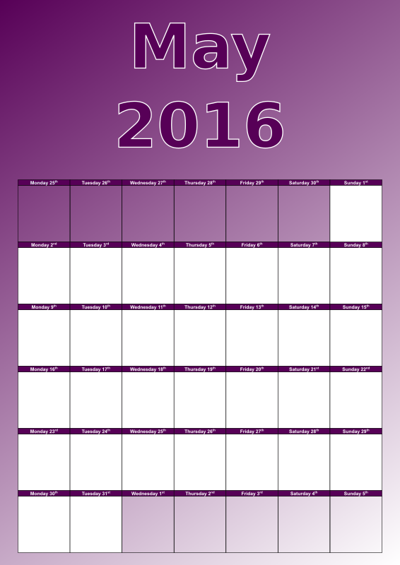 A simply styled monthly calendar.