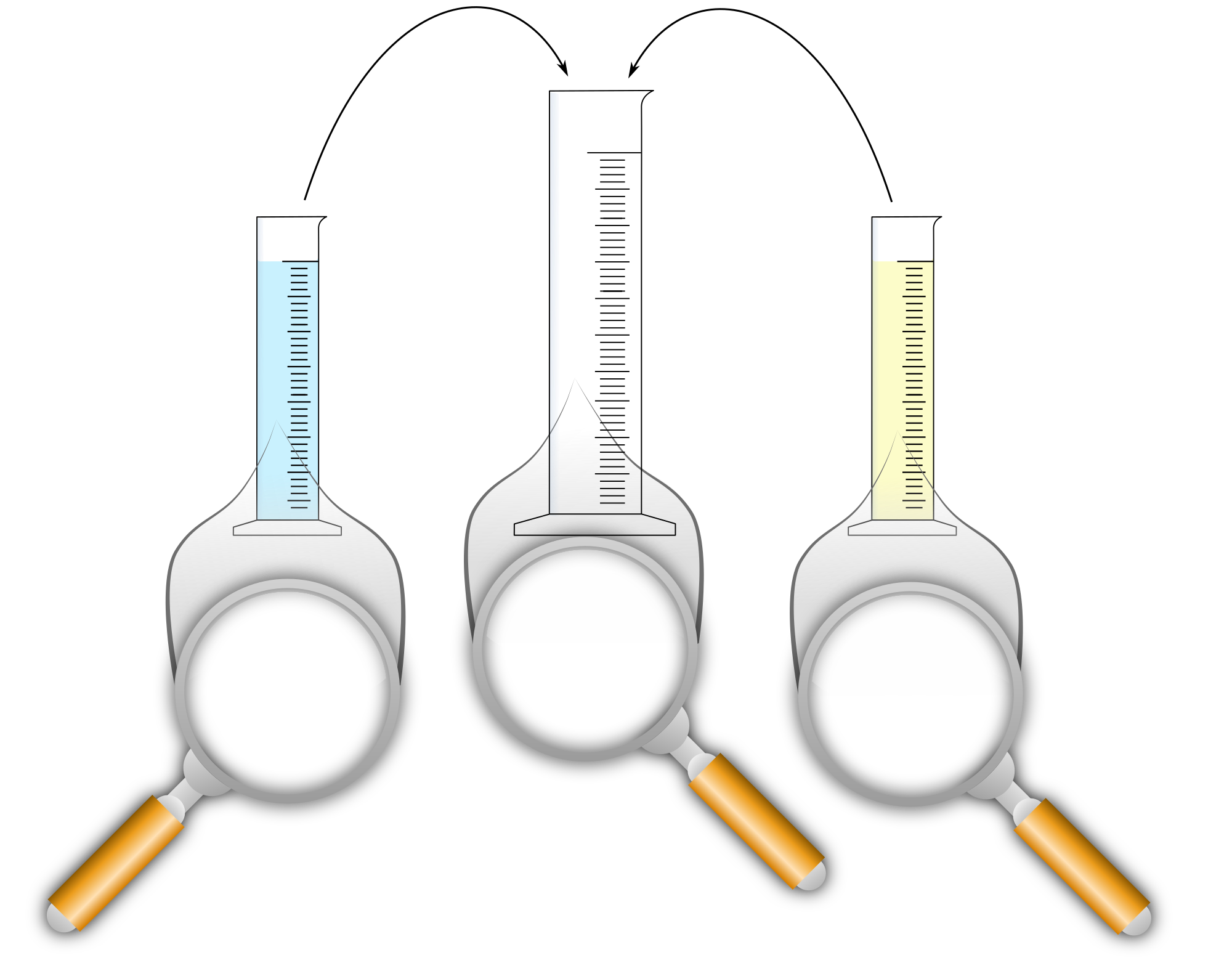 - alkocol Alkohol Atom Bilder zu Experimenten Chemie-Theorie cylinder Lupe magnify messure Messzylinder particles Teilchenmodell Wasser water