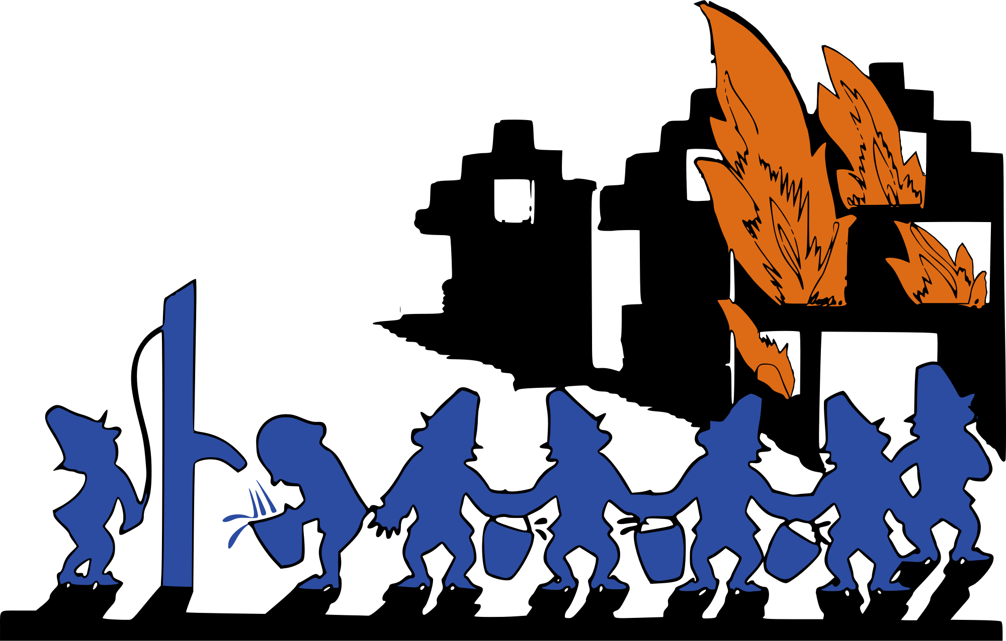 This is another one based on an old public domain poster. This one was about the "history of firefighting" and had a bucket line with water to put out a fire. I thought that was cool, so I isolated and synthesized it for the future! Viola!