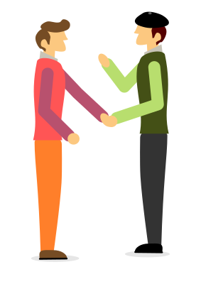 Two men with beret shaking hands.Deux hommes se serrant la main.