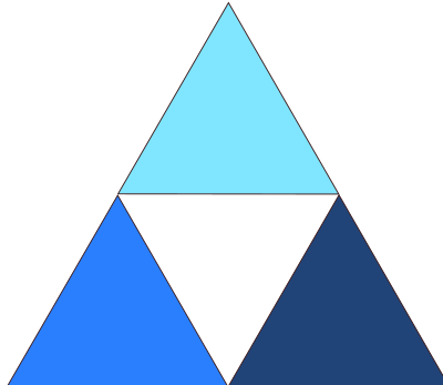 Tres triángulos azules formando uno blanco al centro.
