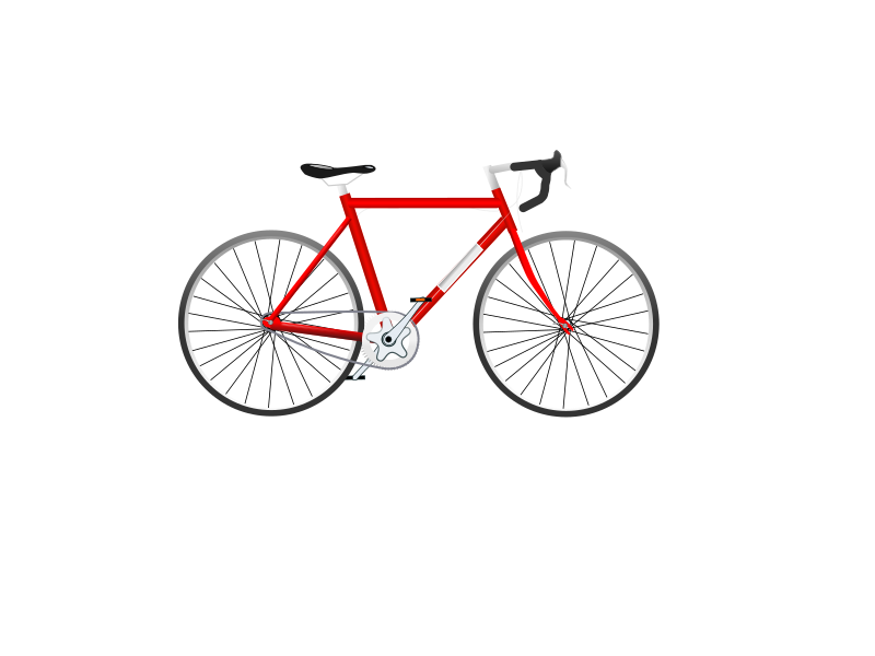 Red bicycle single speed, with drop handlebars.