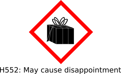 Christmas hazard pictograph and hazard statement. This pictograph is number two of four. The present is adapted from one posted by TheresaKnott.