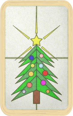 Christmas tree in "frosted" stained glass with wooden frame