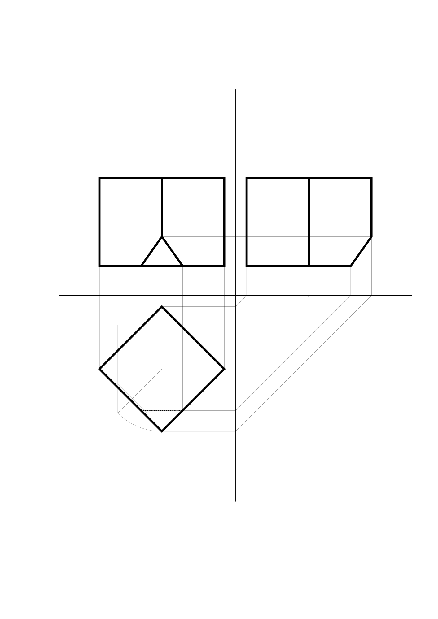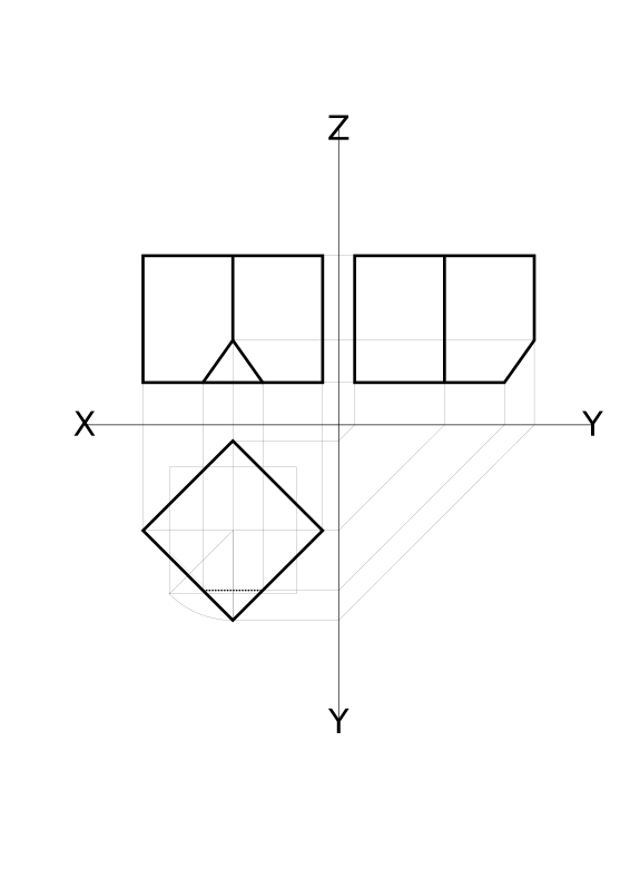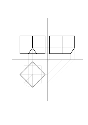 - Hexaeder Hexaederstumpf Würfel abgestumpft cube cubo darstellende Geometrie parallel projiziert