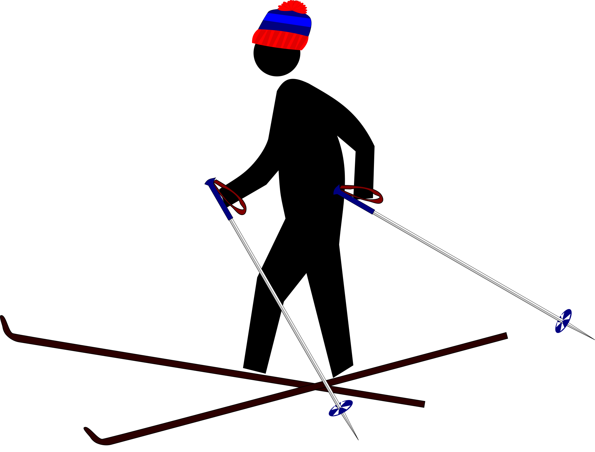 Pedestrian crossing figure on skis with a knit hat.
