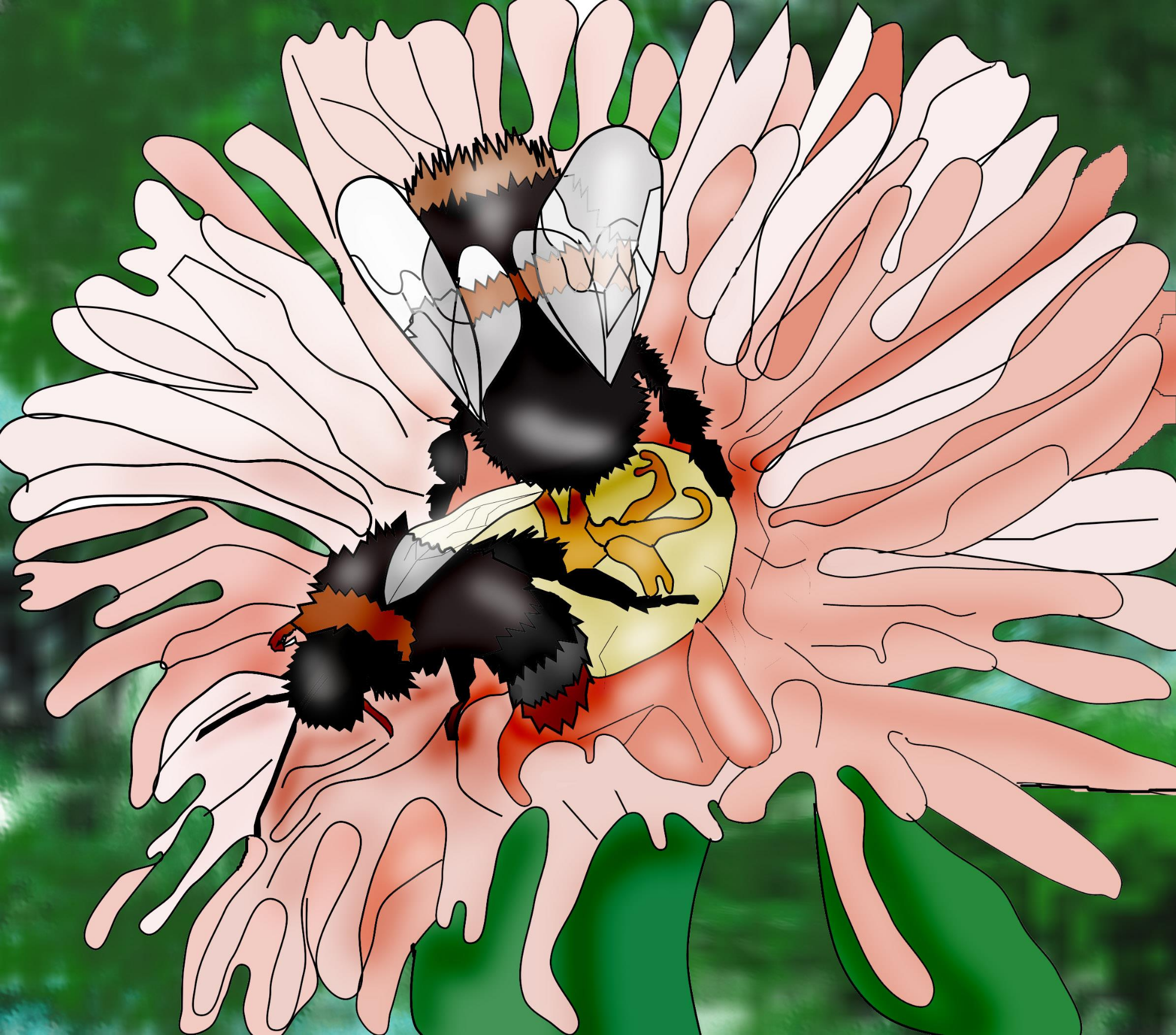svg imagedrawn image of bees on a flower