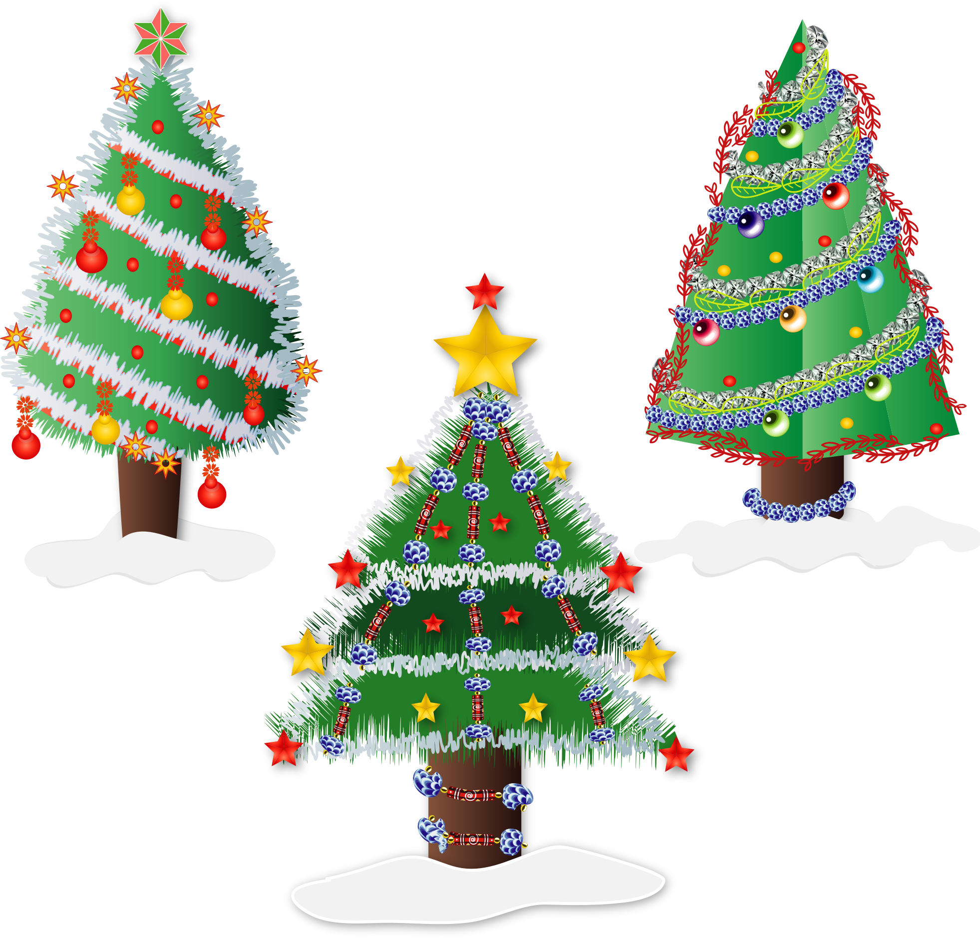 Three flat styled Christmas Trees.