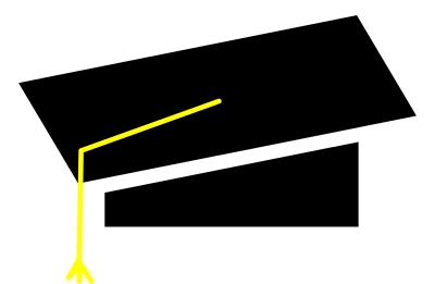 Graduate cap with yellow tassel.