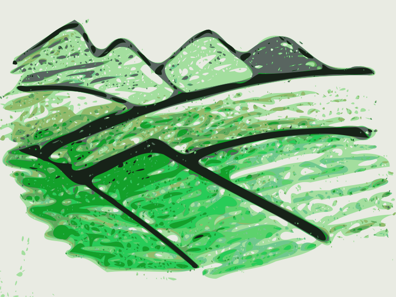 Hand drawn and pastel colored mountains, stylized in Inkscape.