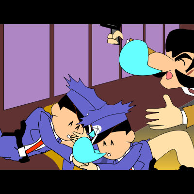 Policemen fell asleep in sleeping gas attack of the yellow man.Animated by 2D key-frame animation editor 9VAe.(http://codepen.io/danjiro/post/9vae-introduction)