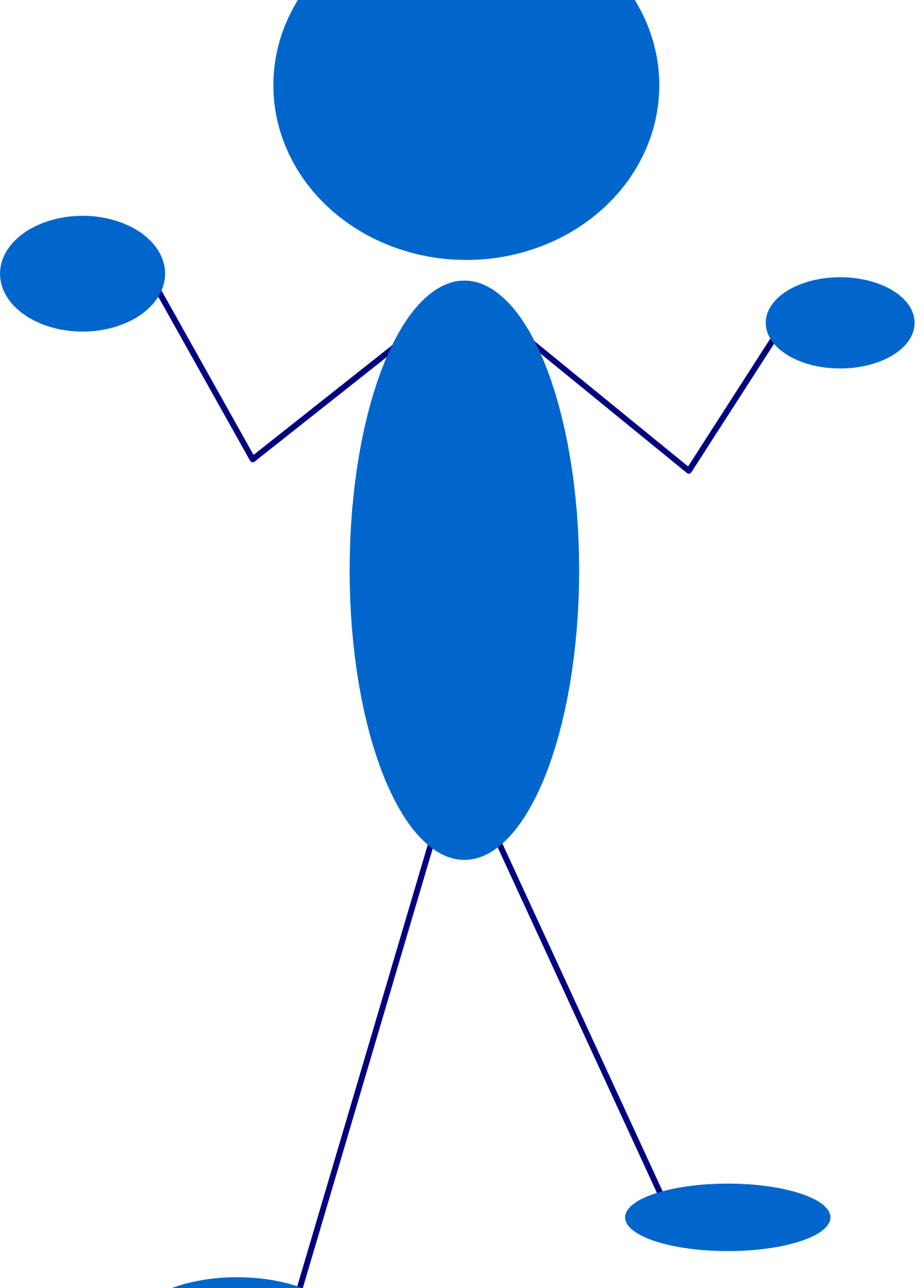 A blue stick man questionning.