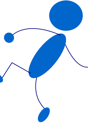 A blue stick man throwing.