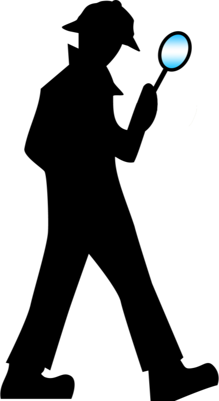Silhouette of a detective holding a magnifying glass
