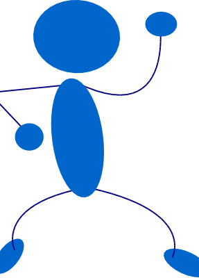 A blue stick man dancing.