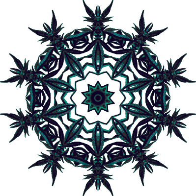 Design with rotational symmetry formed from elements of a plant drawing.