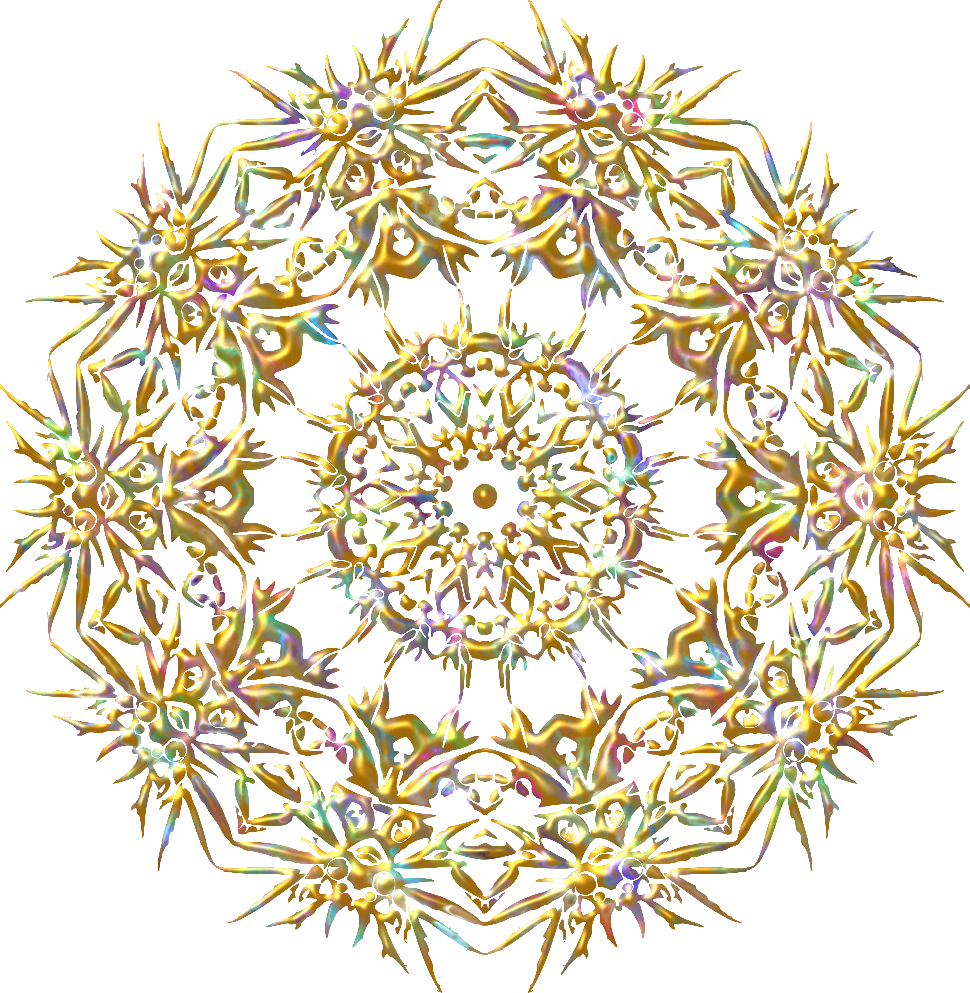 Design with approximate rotational symmetry formed from elements of a plant drawing.