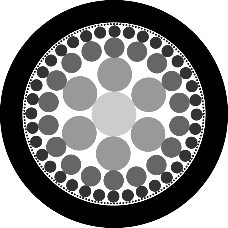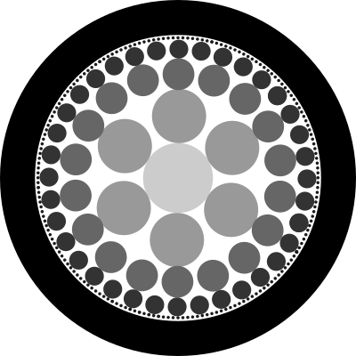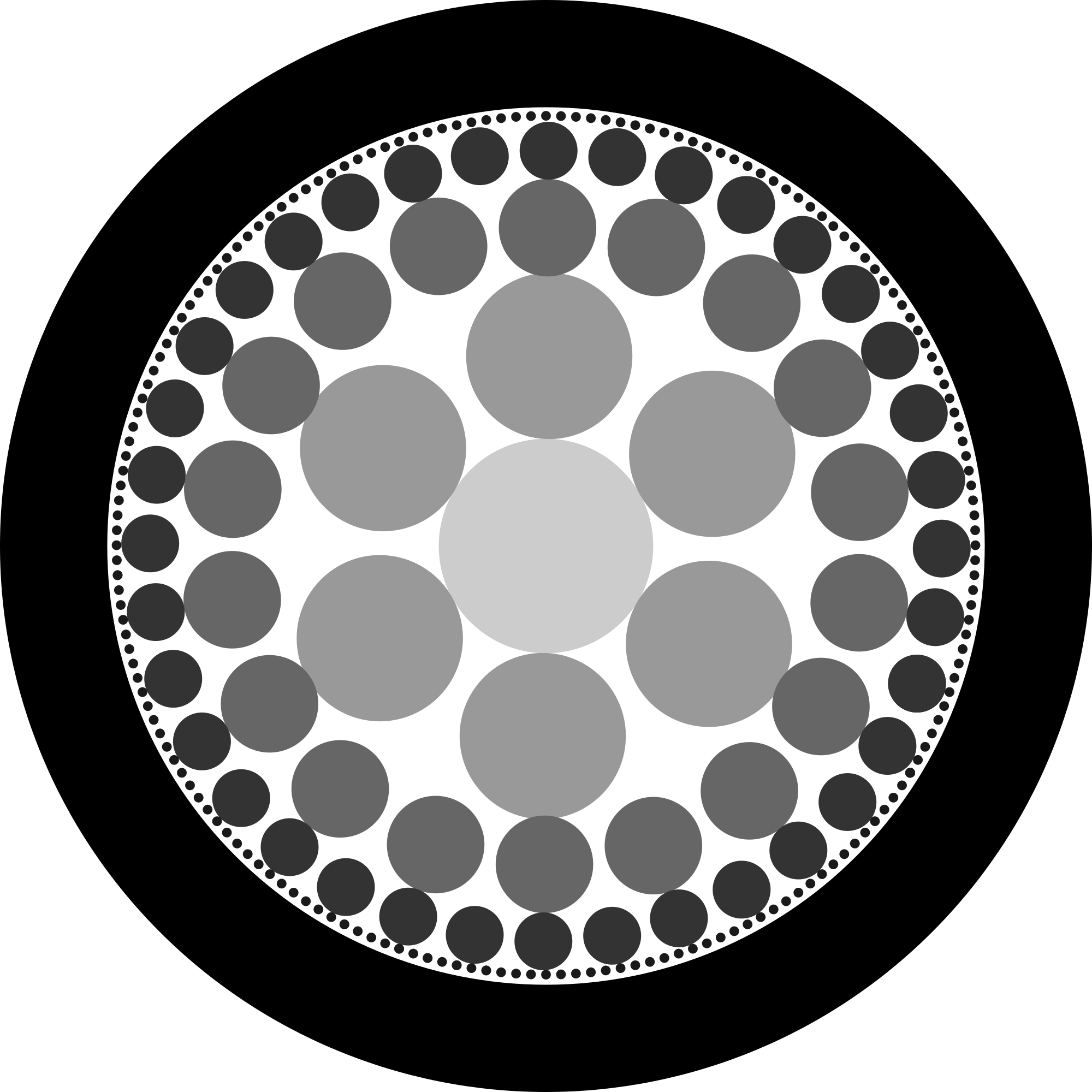 Circles repeated with grayscale fade to center.