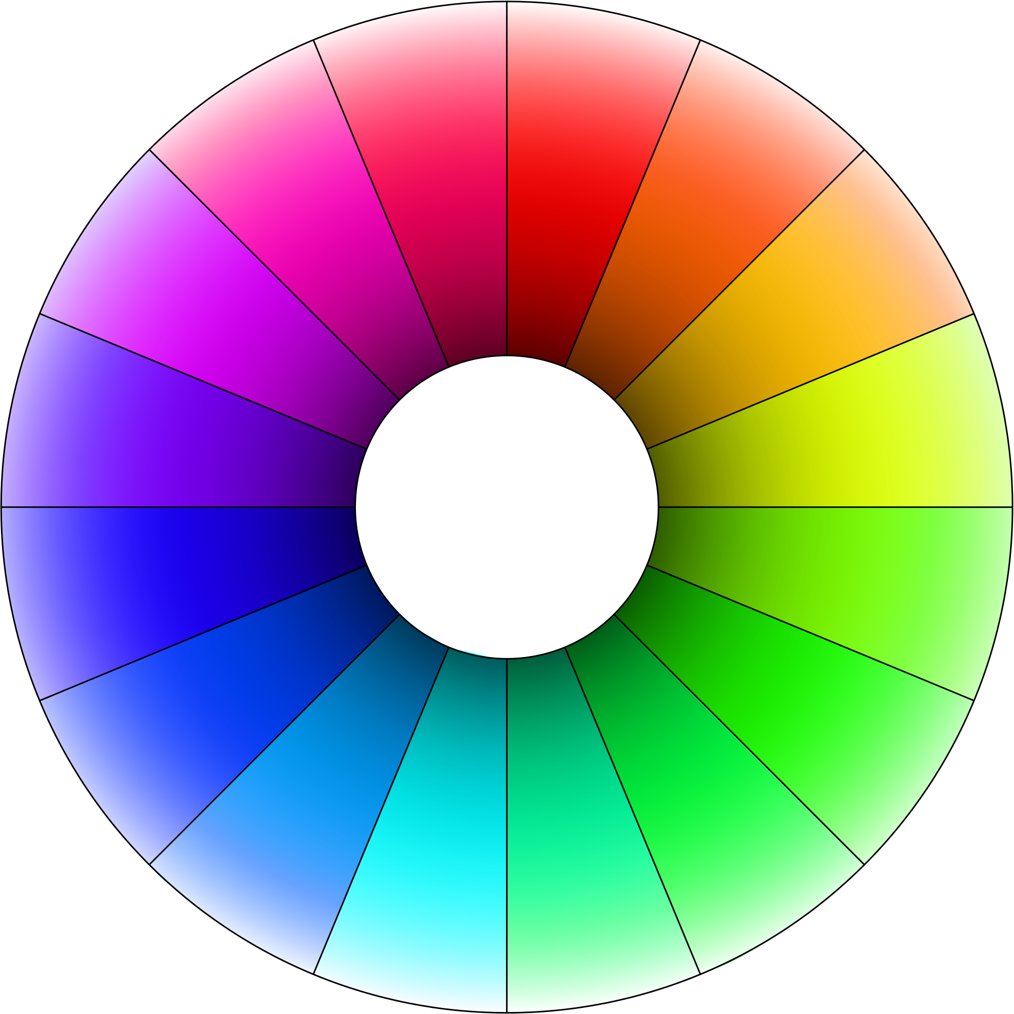 Hue color wheel with lightness gradient