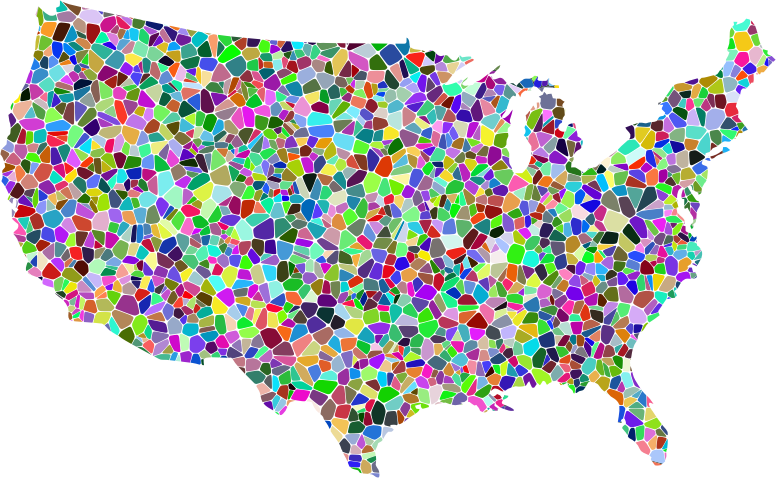 - Abstract America Art Borders Chromatic Colorful Country Geography Geometric Map Nation Prismatic Rainbow Tiled Tiles USA United States Voronoi