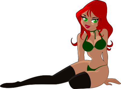 Red-haired woman in a green bikini