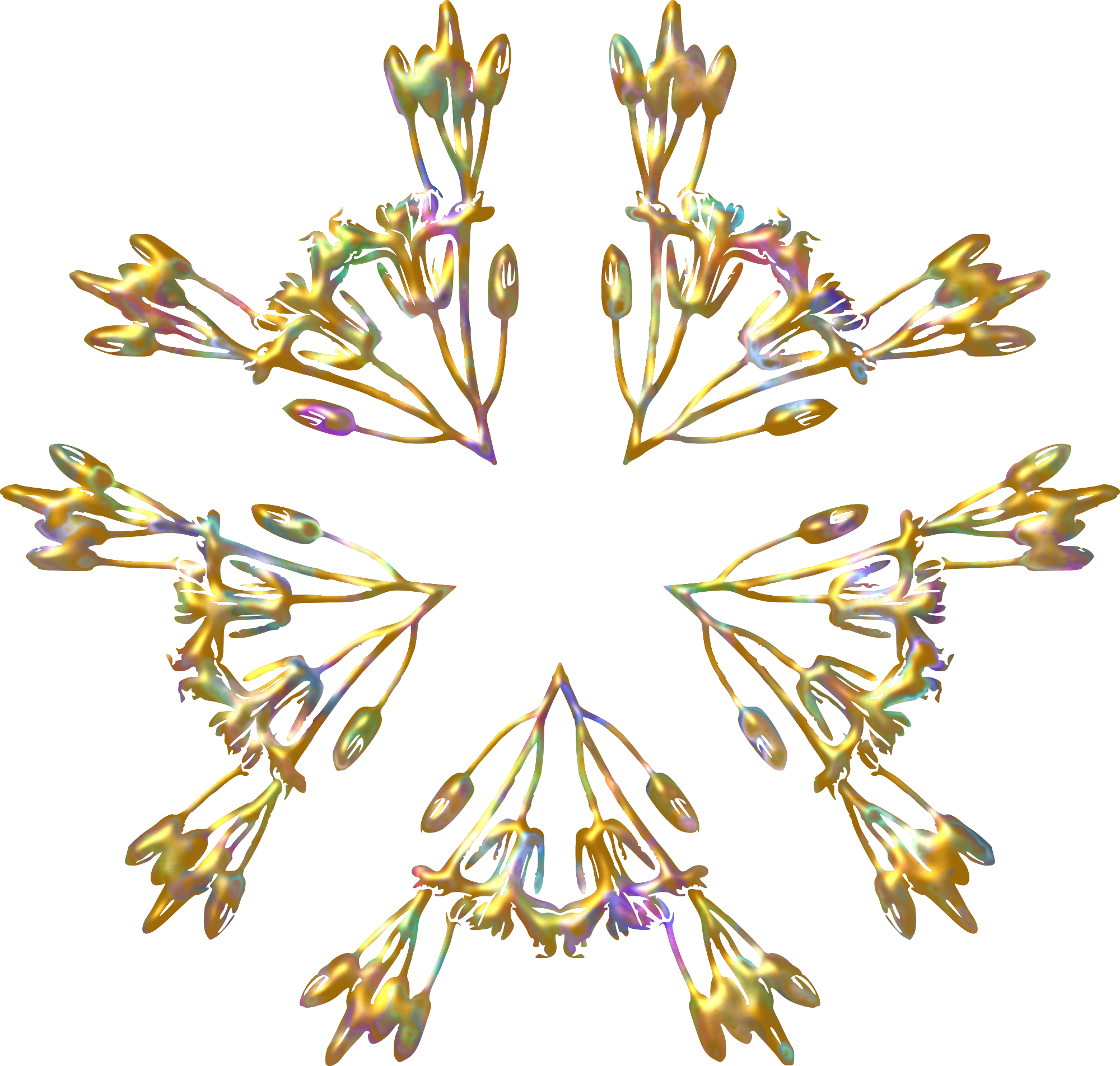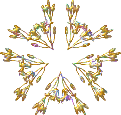 Design with approximate rotational symmetry formed from elements of a plant drawing.