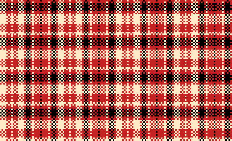 A swatch of red woven plaid. The squares are clones of originals. If you edit with Inkscape, the originals areoff the page left of the upper left corner. If you don't like these colors, select and modify each original and color changes should propagate to the rest of the drawing.