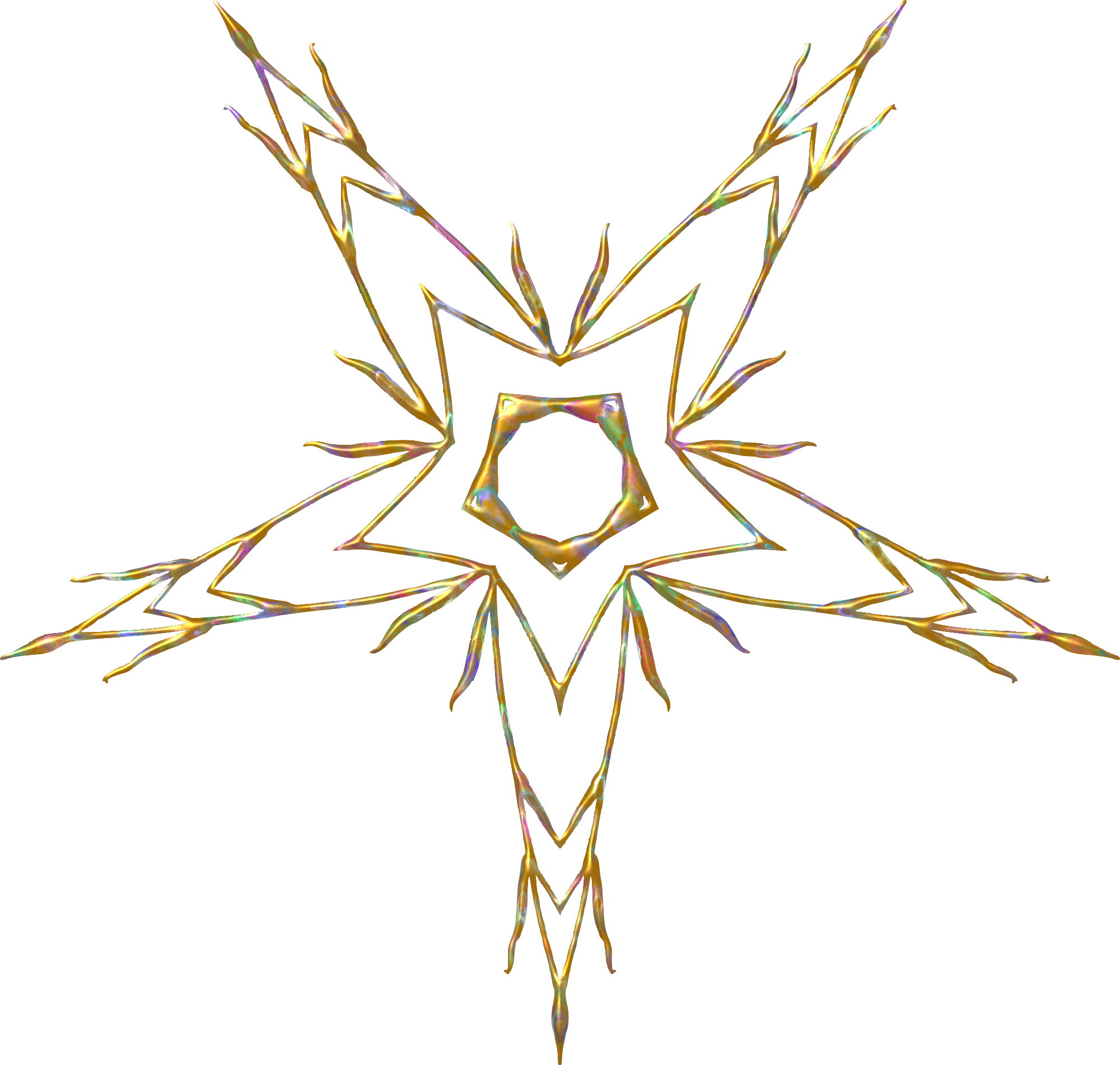 Design with rotational symmetry formed from elements of a plant drawing.
