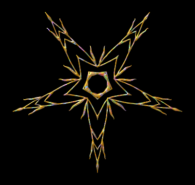 Design with rotational symmetry formed from elements of a plant drawing.