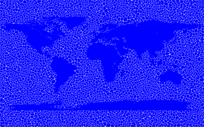 Inverse Tiled Wireframe World Map Blue