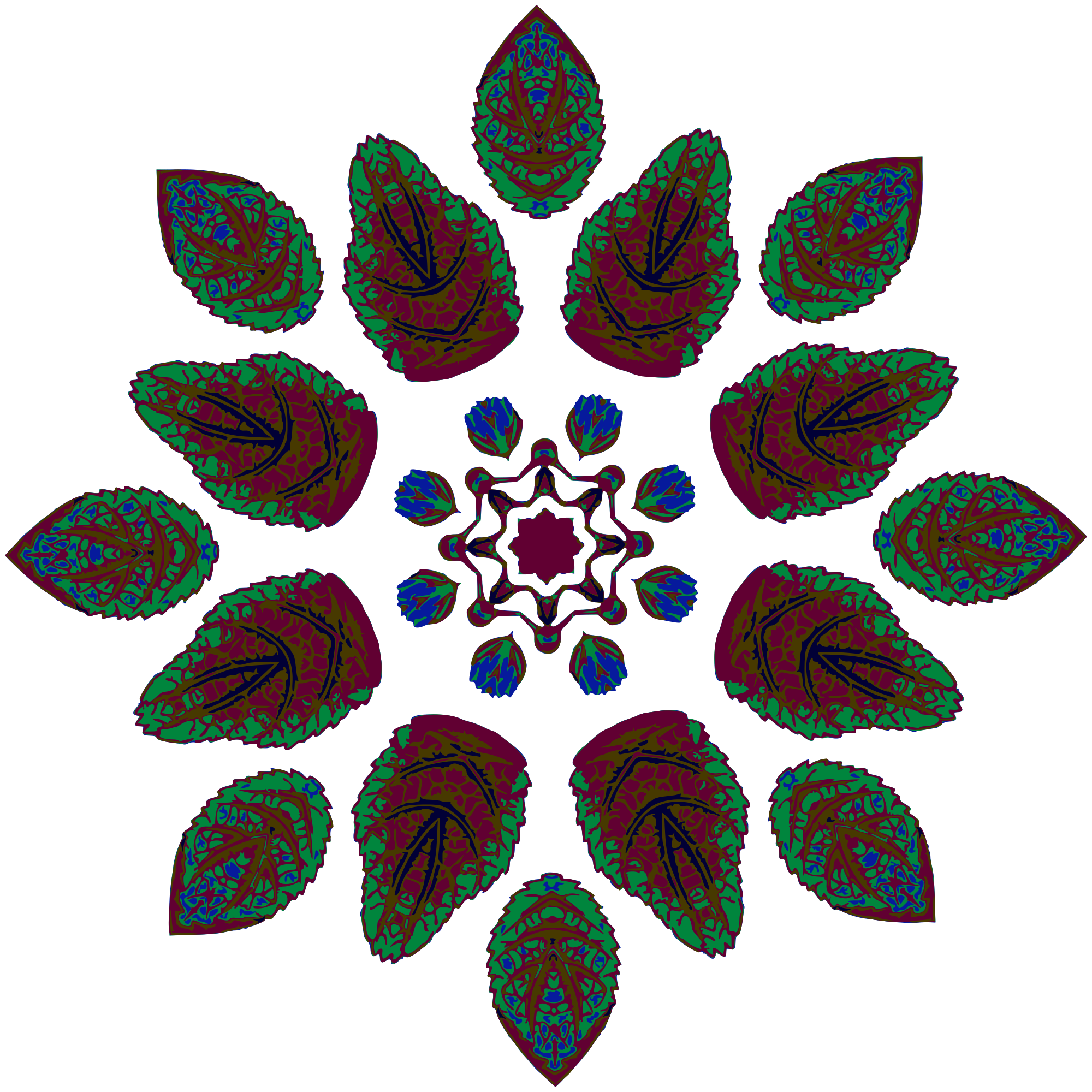 Design with rotational symmetry formed from elements of a plant drawing.