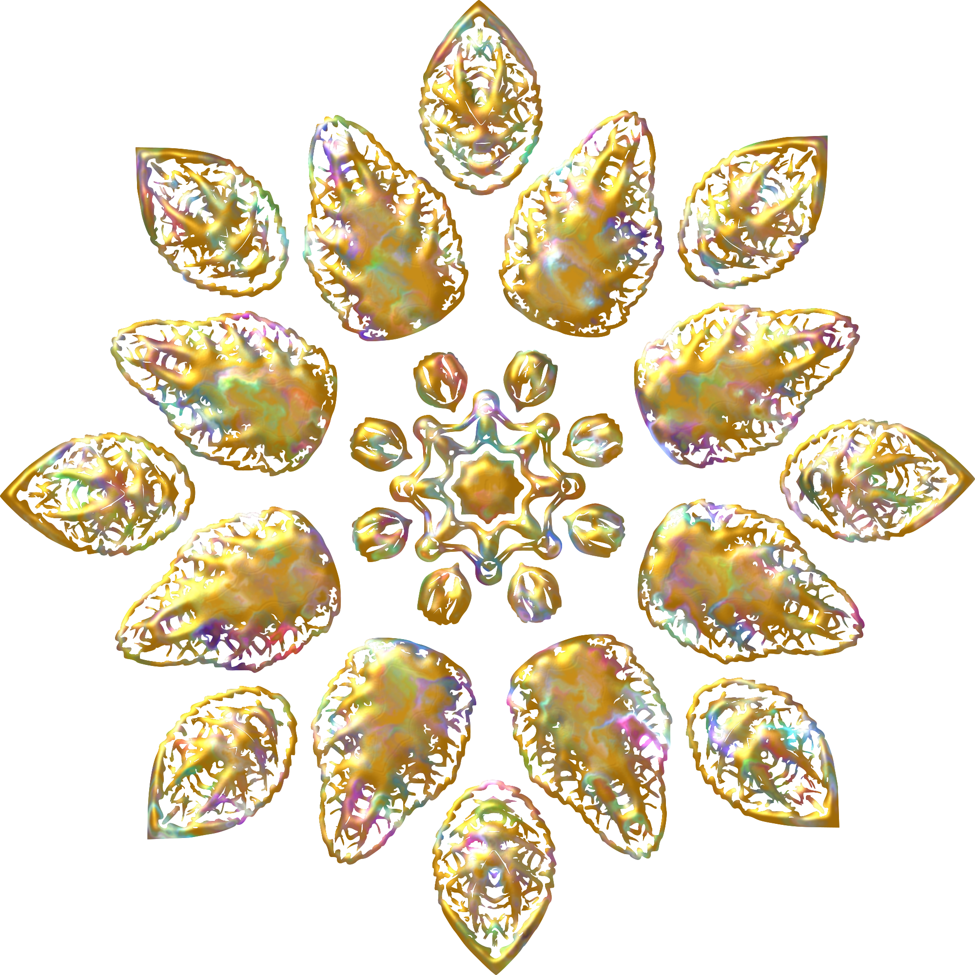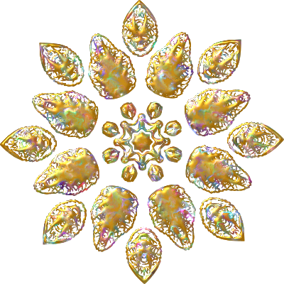 Design with rotational symmetry formed from elements of a plant drawing.
