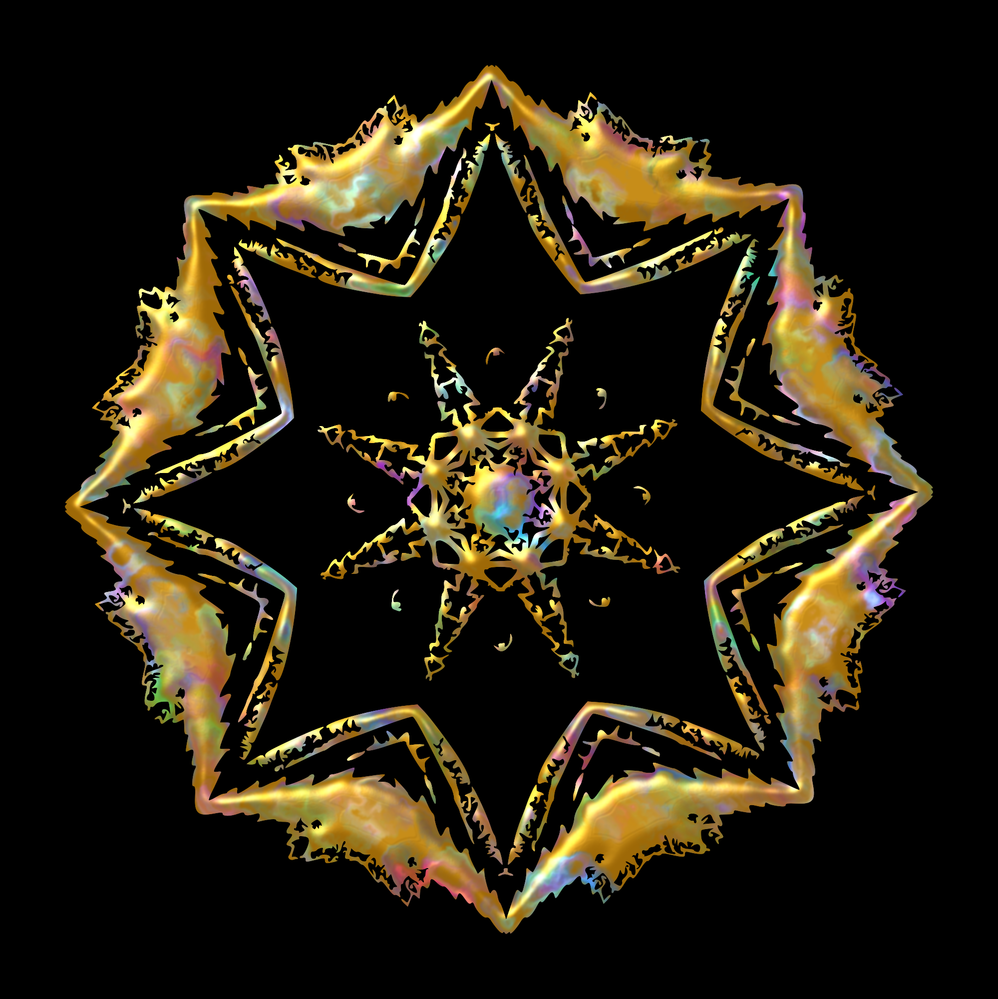Design with rotational symmetry formed from elements of a plant drawing.