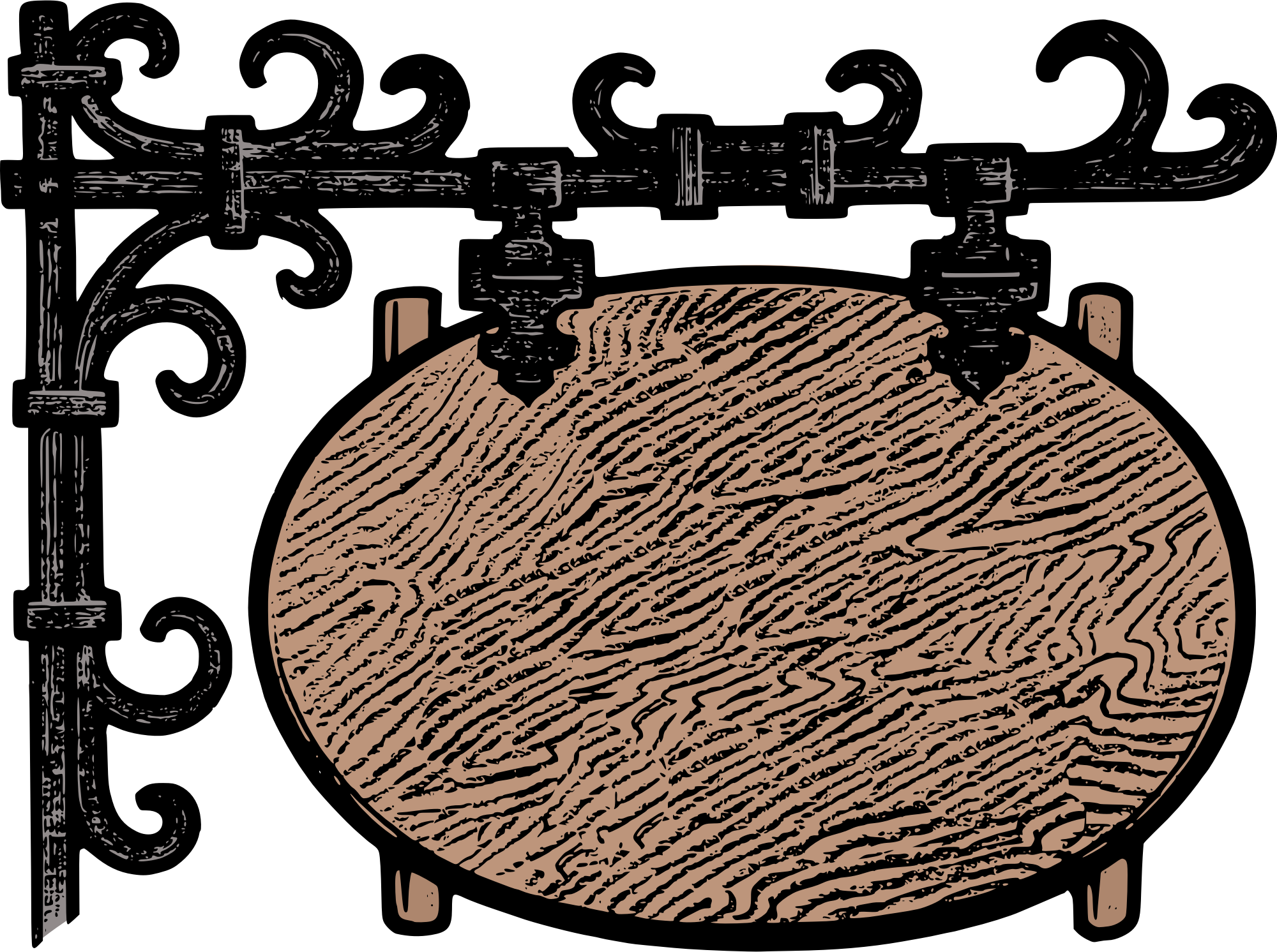 This is a classic "tavern style" sign that could be used in an RPG or for some sort of theme like that. Use a "gothic" font and put on any name you want, go for it.
