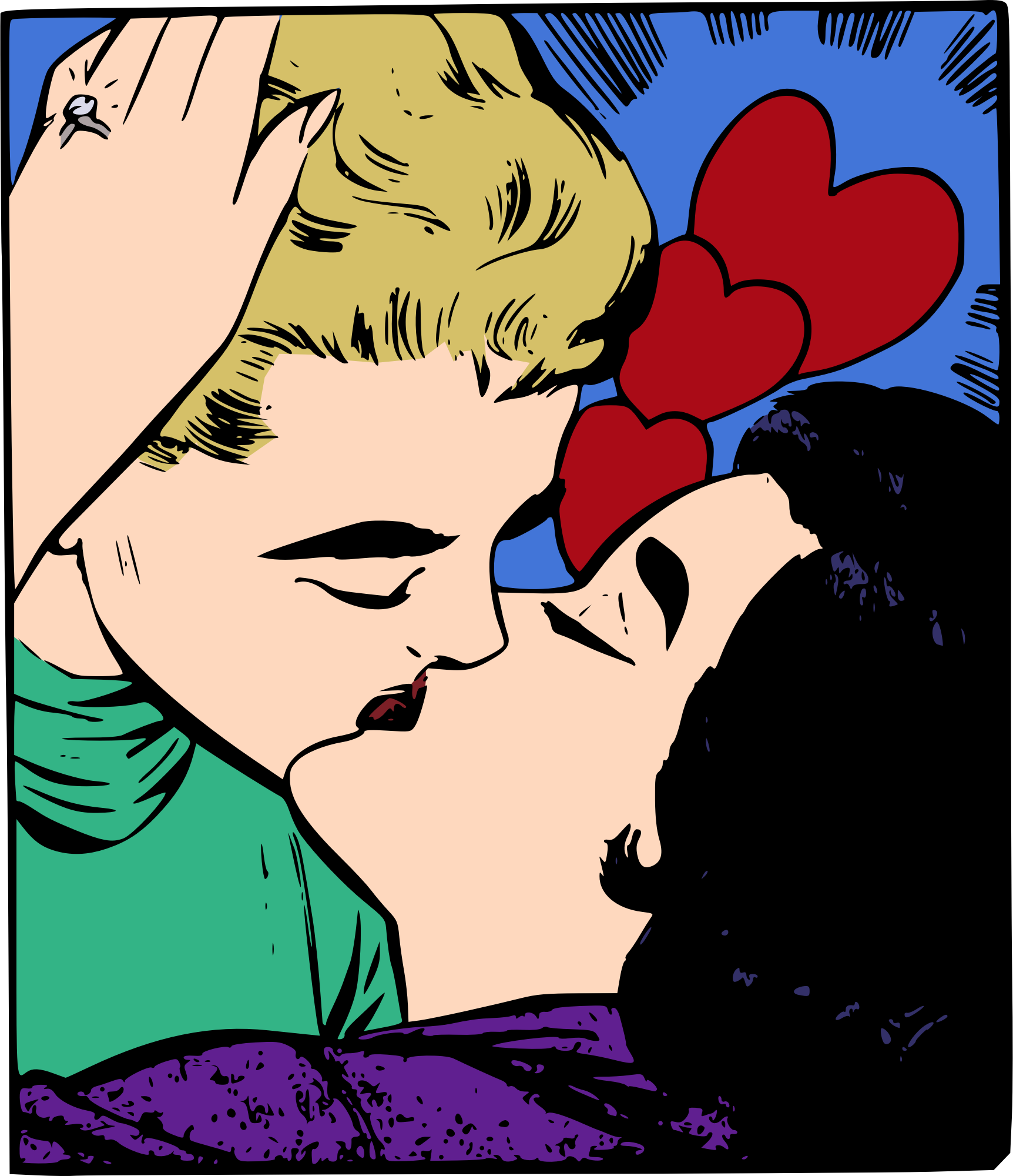 This classic kissing couple has hearts to show their love for each-other. For some reason the beating pulsing chunk of flesh inside our chests the controls the flow of blood to our system symbolizes are hormonal responses to chemical reactions inside our bodies.