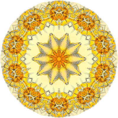 A design with approximate rotational symmetry formed from a drawing of acanthometra by Ernst Haeckel. The design was drawn as a PNG in Paint.net by repeated rotation of wedges of the drawing around a centre point. It was vectorized in Vector Magic