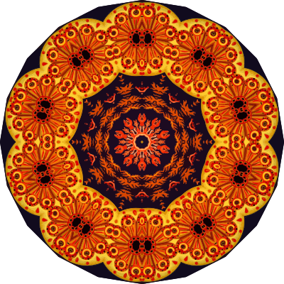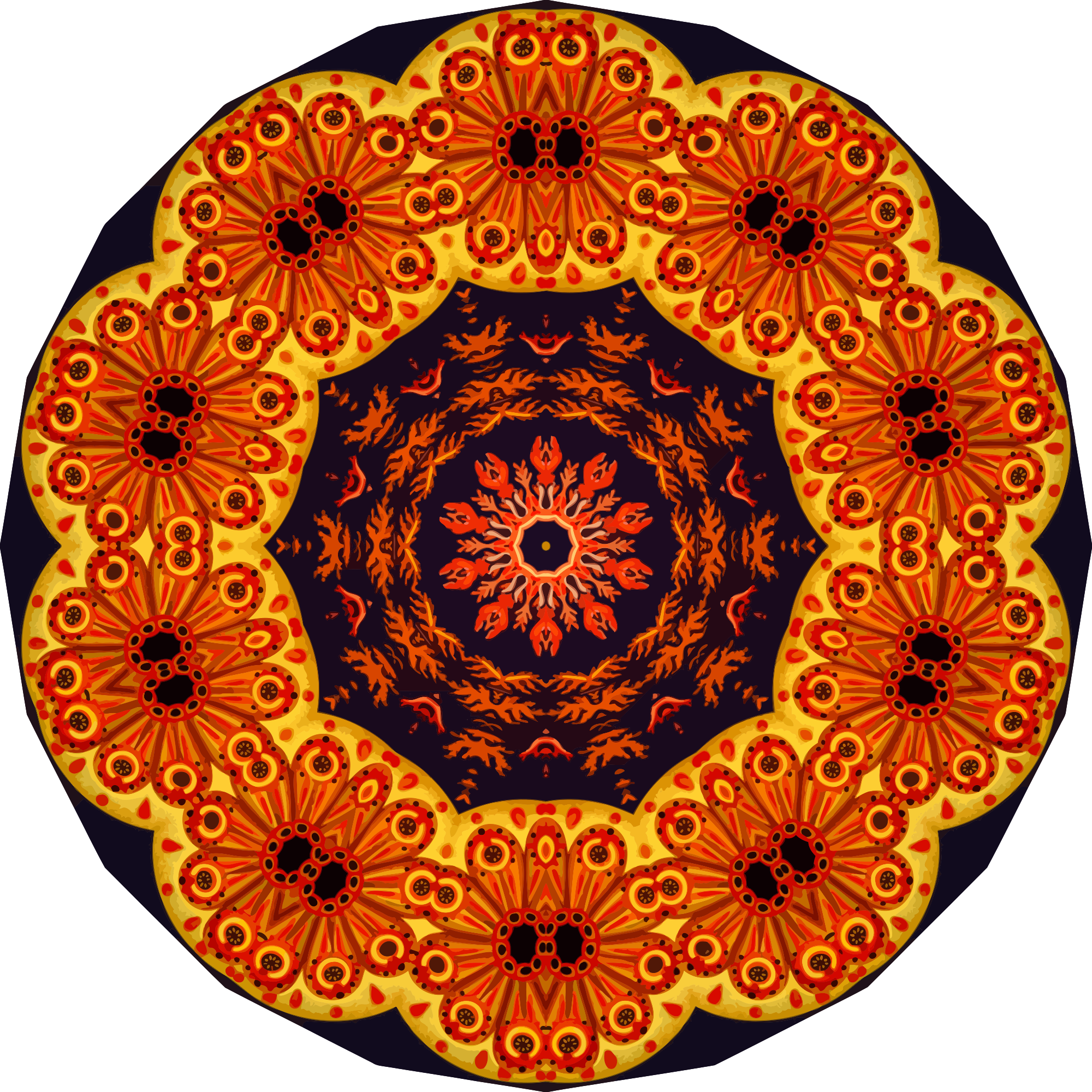 A design with approximate rotational symmetry formed from a drawing of ascidiae by Ernst Haeckel. The design was drawn as a PNG in Paint.net by repeated rotation of wedges of the drawing around a centre point. It was vectorized in Vector Magic