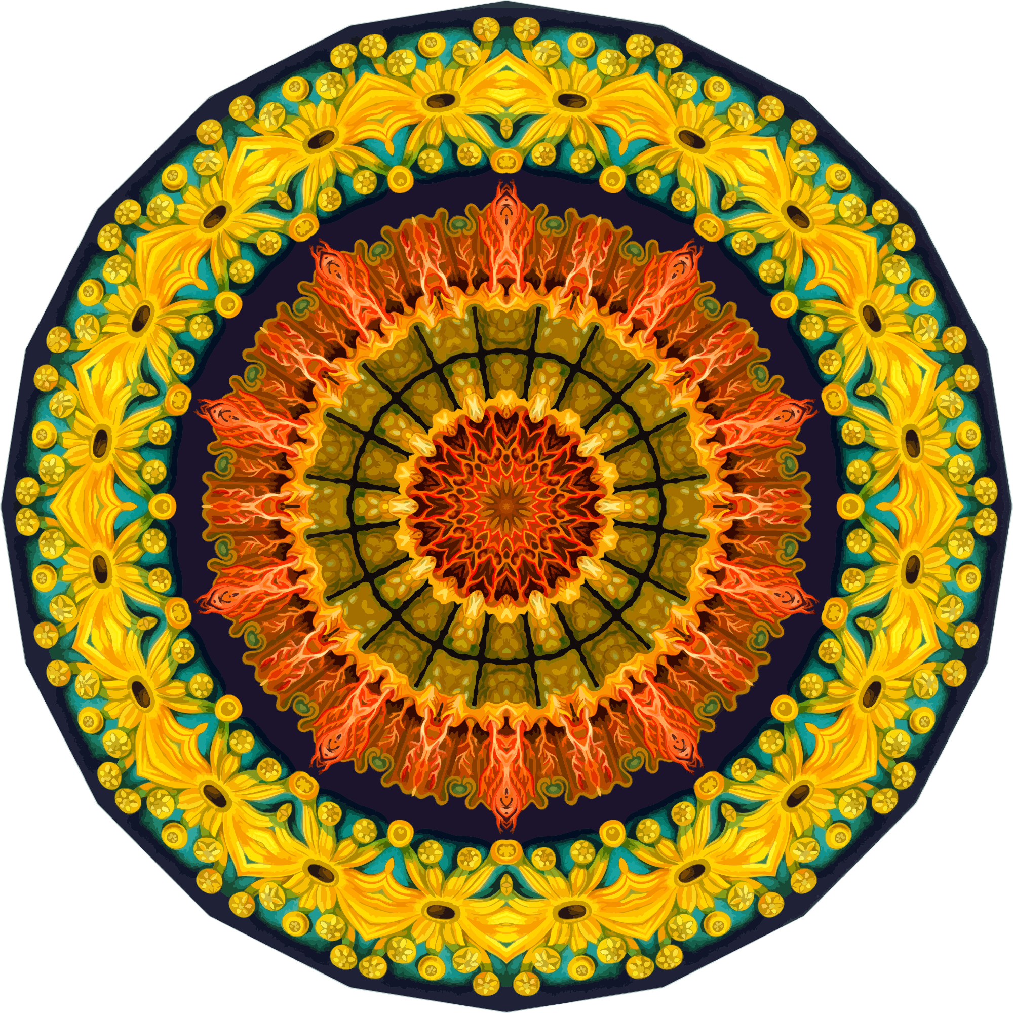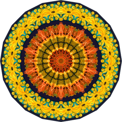 A design with approximate rotational symmetry formed from a drawing of ascidiae by Ernst Haeckel. The design was drawn as a PNG in Paint.net by repeated rotation of wedges of the drawing around a centre point. It was vectorized in Vector Magic
