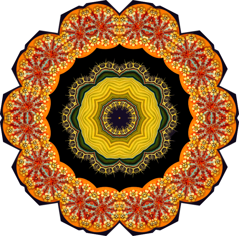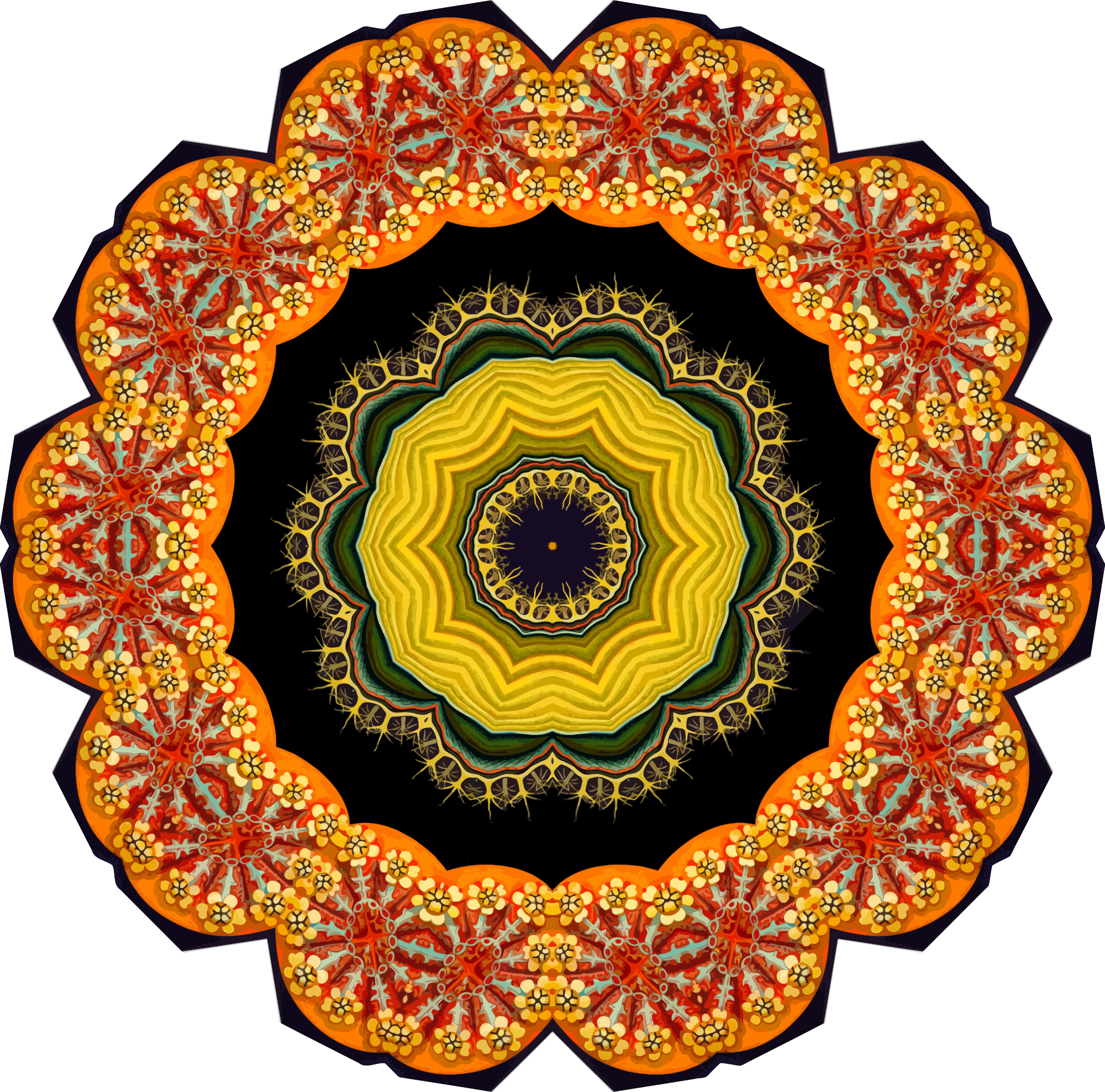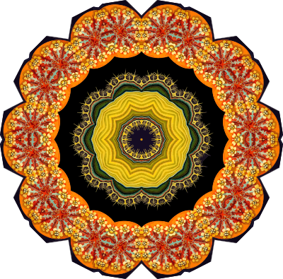 A design with approximate rotational symmetry formed from a drawing of ascidiae by Ernst Haeckel. The design was drawn as a PNG in Paint.net by repeated rotation of wedges of the drawing around a centre point. It was vectorized in Vector Magic