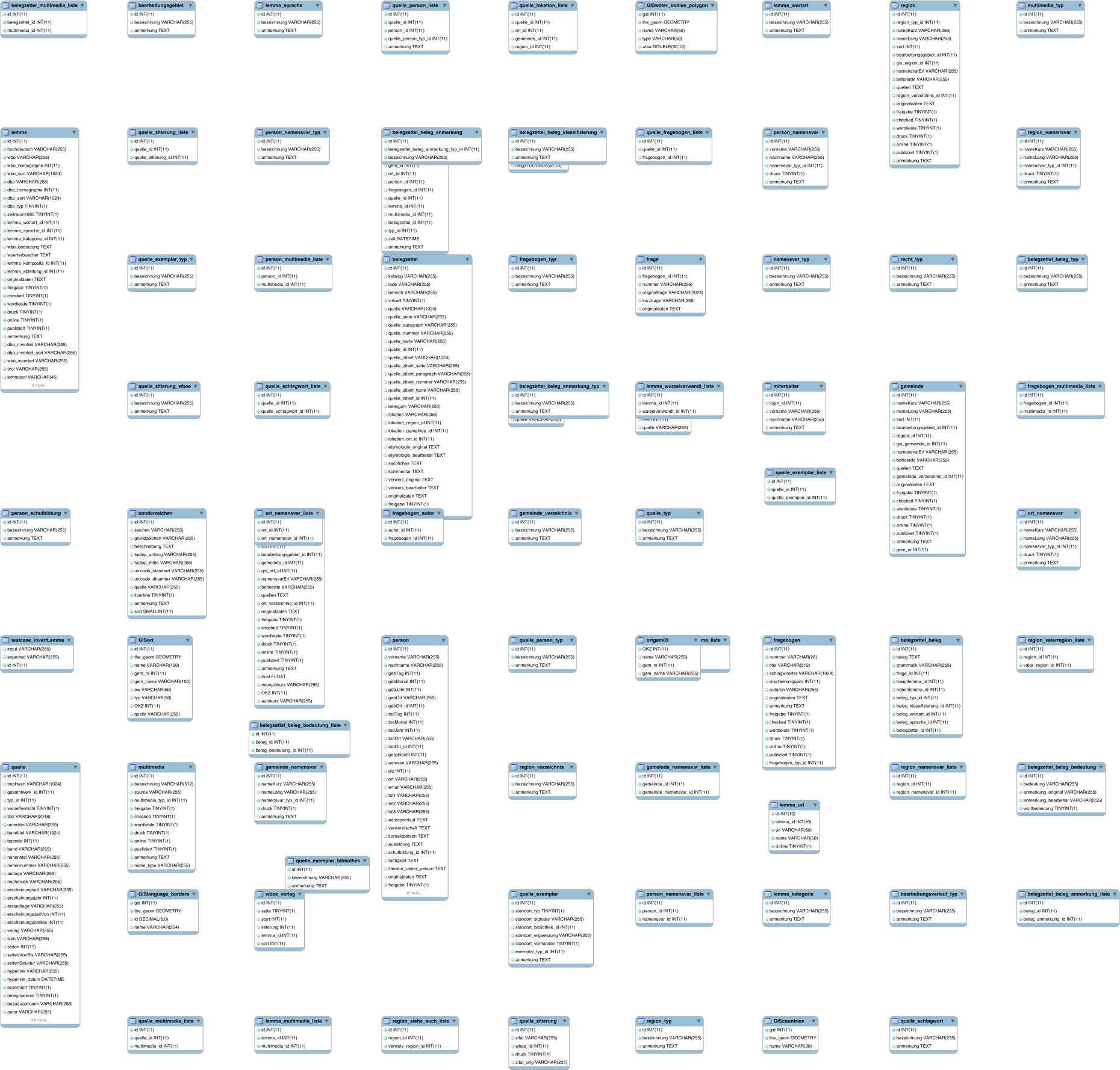 A database schema big chart.