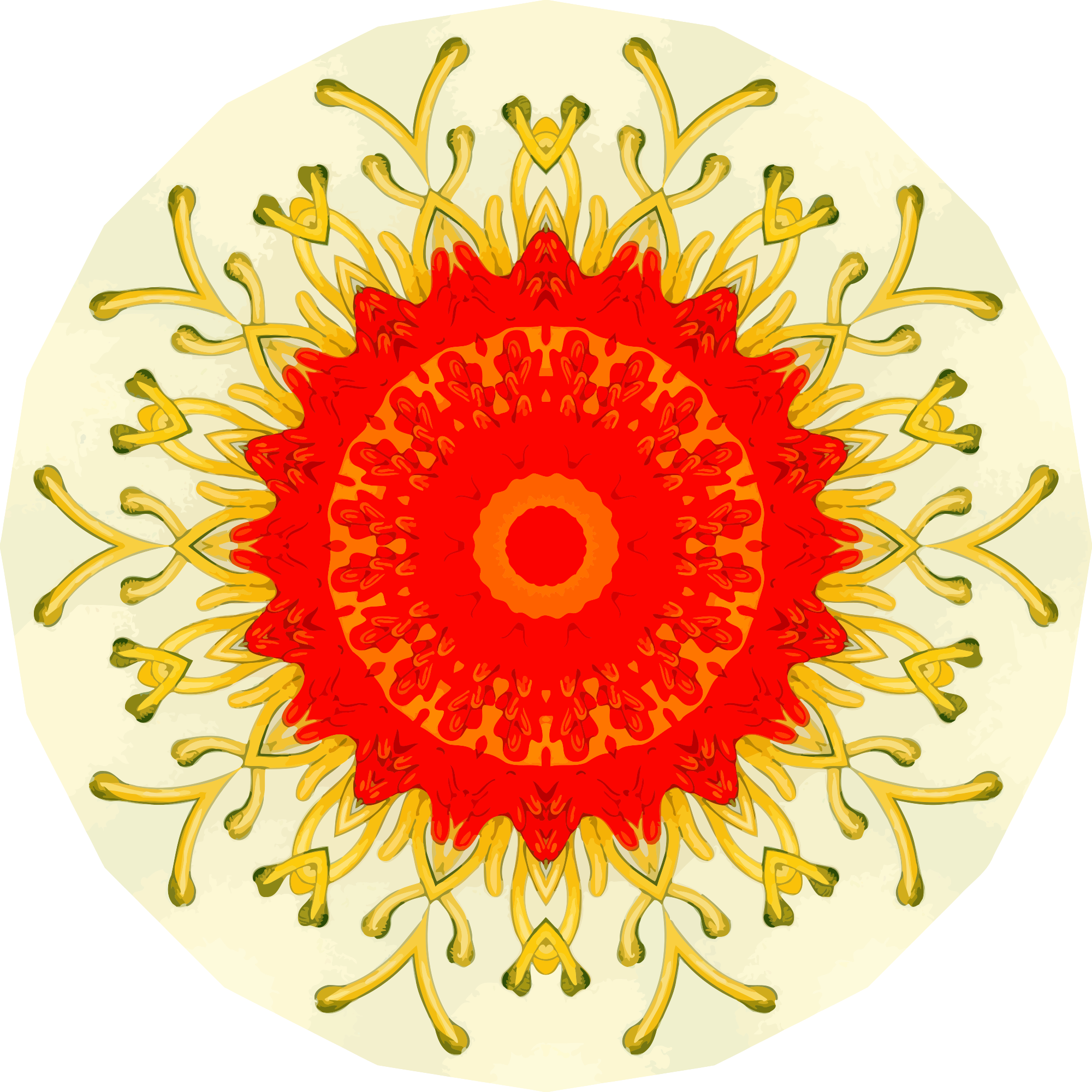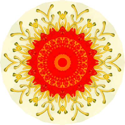 A design with approximate rotational symmetry formed from a drawing of starfish by Ernst Haeckel. The design was drawn as a PNG in Paint.net by repeated rotation of wedges of the drawing around a centre point. It was vectorized in Vector Magic