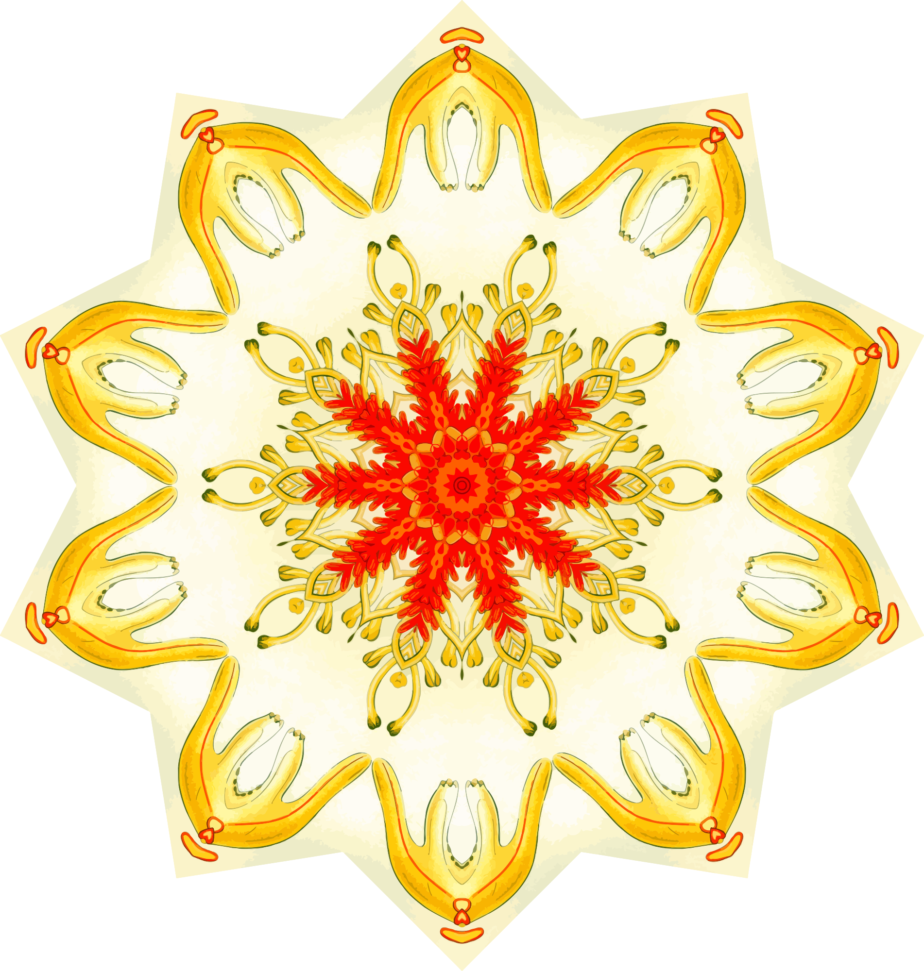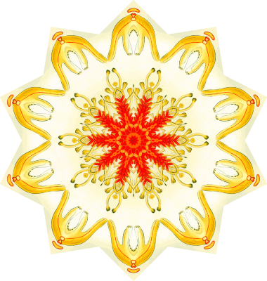 A design with approximate rotational symmetry formed from a drawing of starfish by Ernst Haeckel. The design was drawn as a PNG in Paint.net by repeated rotation of wedges of the drawing around a centre point. It was vectorized in Vector Magic