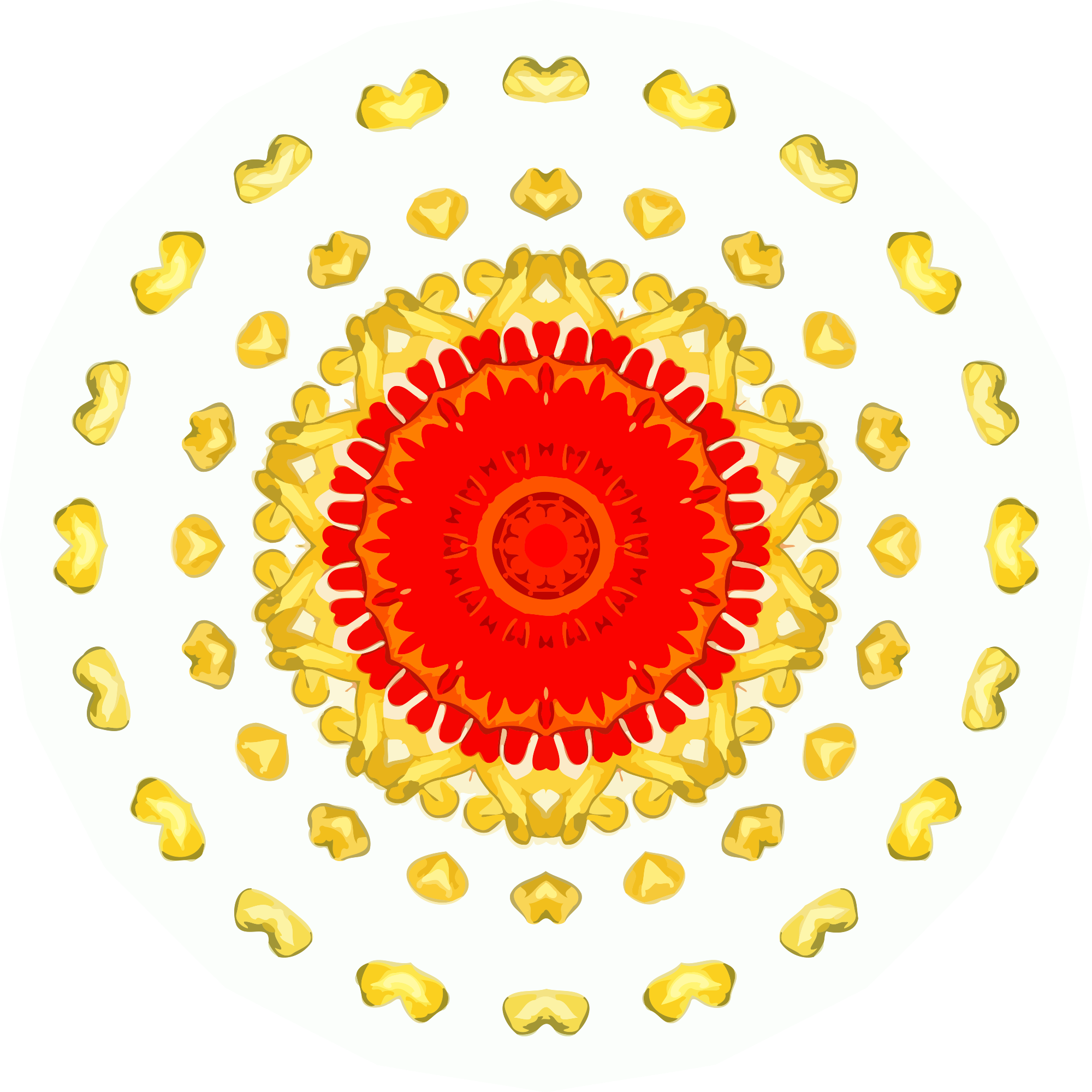A design with approximate rotational symmetry formed from a drawing of starfish by Ernst Haeckel. The design was drawn as a PNG in Paint.net by repeated rotation of wedges of the drawing around a centre point. It was vectorized in Vector Magic