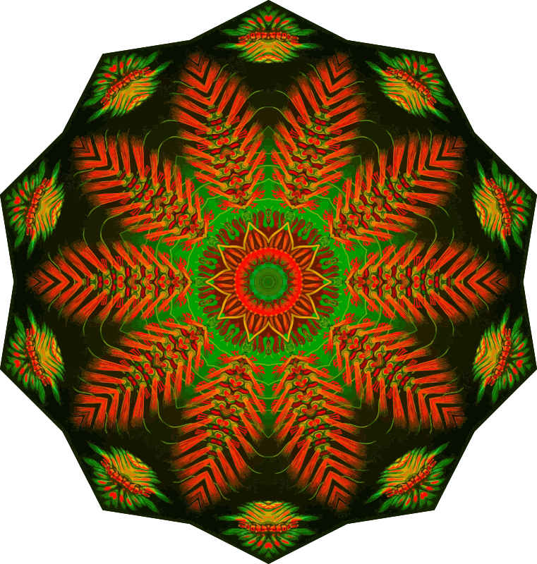 A design with approximate rotational symmetry formed from a drawing of segmented worms by Ernst Haeckel. The design was drawn as a PNG in Paint.net by repeated rotation of wedges of the drawing around a centre point. It was vectorized in Vector Magic