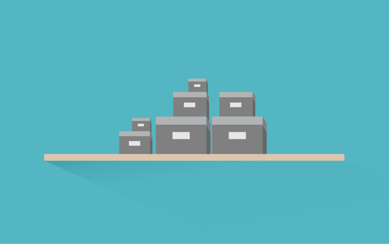 Three stacks of boxes on a shelf in rectangle, not a square.