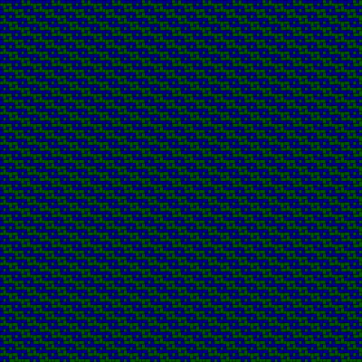 A swatch of blue and green fabric woven in a chain-like pattern.