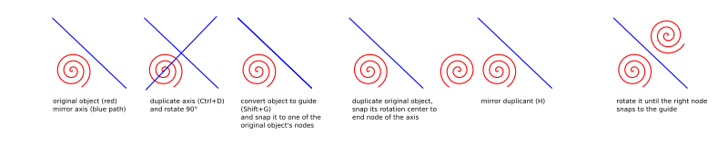 Another possible way of mirroring objects in inkscape on a random axis.